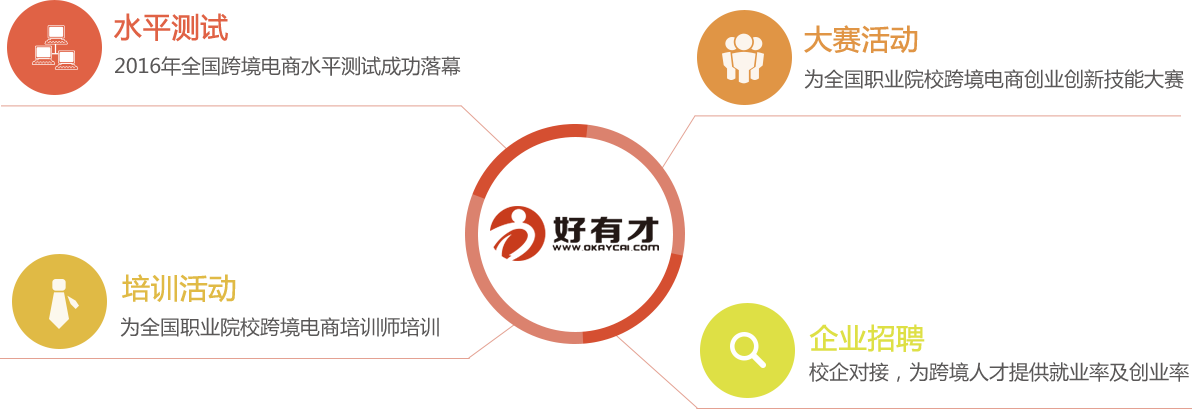搭建跨境电商人才网(OkayCai),校企合作,完成人才对接。